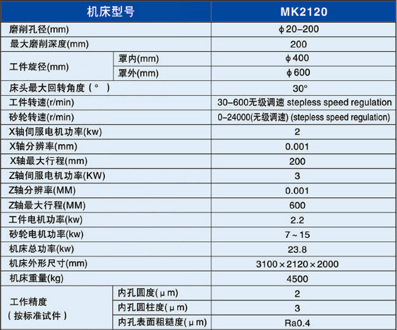 ●機床采用工件箱前後進給,工作台(砂輪架)左右運動的結構方式,工件箱進給及砂輪架運動導軌均爲直線滾動導軌,移動均由伺服電機驅動滾珠絲杠運動~,