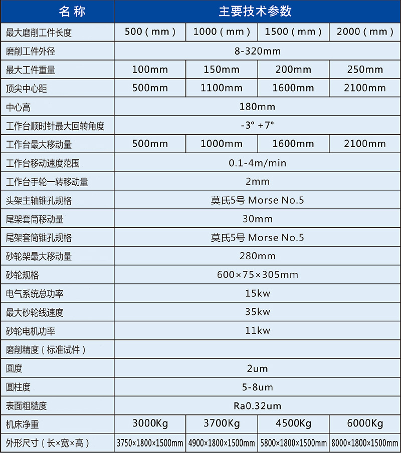 本機床主要特點: ● 本機床主要用于磨削圓柱形或圓推形工件的外圓表面。 ● 機床工作台的縱向移動由液壓無級變速傳動,也可以手🛀🏼動傳😘動。 ● 砂輪架橫向進給由液壓作微量自動周期進給和快😸速😝進退,也可以用手輪實現粗細兩種進給。 ● 砂輪架和工作台導軌采用靜壓潤滑。 ● 工件、砂輪、液壓泵、冷卻泵分别由獨立電機驅動。 ● 機床的各個運動部件具有電氣、液壓和機械連鎖機構,操😁作安👾全可靠。