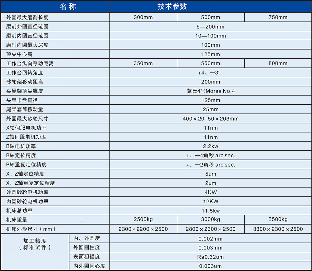 ● 本機床爲三軸(砂輪架橫向進給X軸、工作台縱向運動☠️Z軸、砂輪架底座分度回轉B軸)二聯動數控萬.能外圓磨床,數控系🎅🏿統采用國際或國内知名品牌。具有自動進刀、退刀、粗磨、精磨,修正砂輪,自動補償、砂輪架自動回💘轉等功能,加配自動測量儀,能實現磨削循環功能的全閉環。