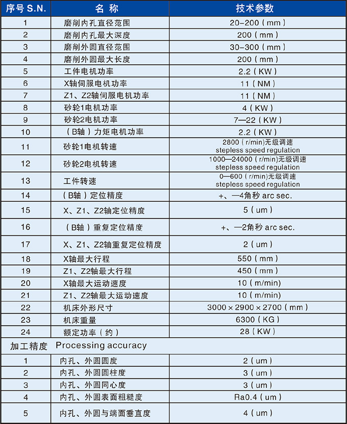 MKF2120+B軸型多功能數控磨床主要技術參數表